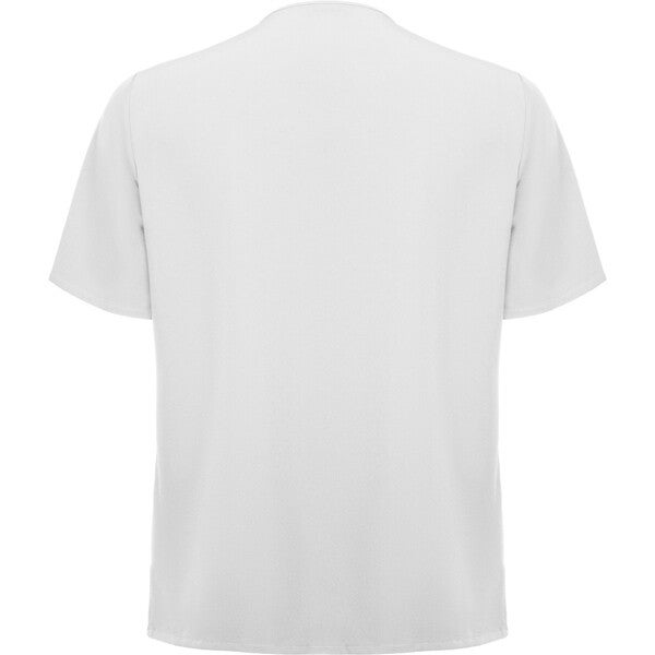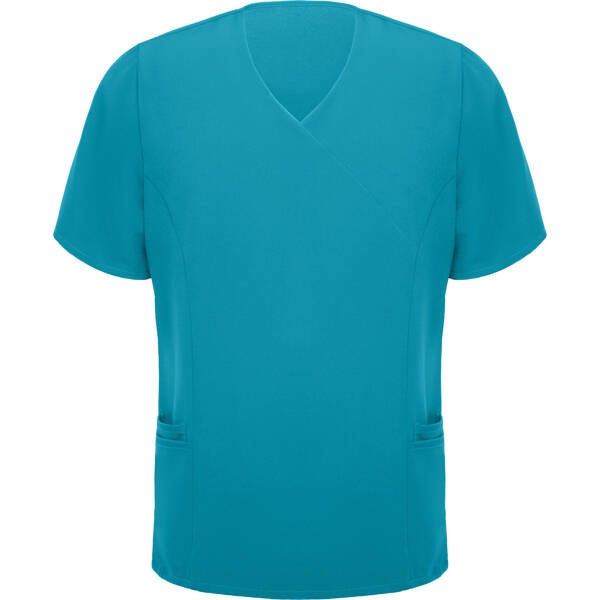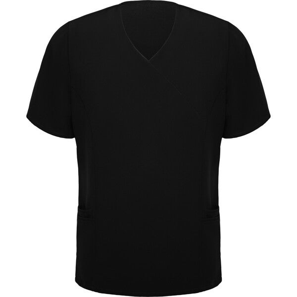 Werkshirt met korte mouwen. Gekruiste piekhalslijn. Twee Franse zakken