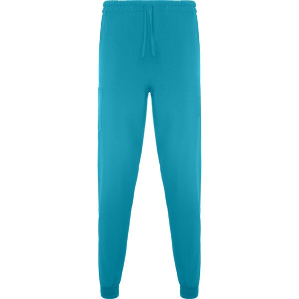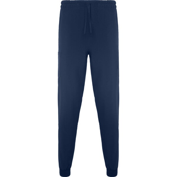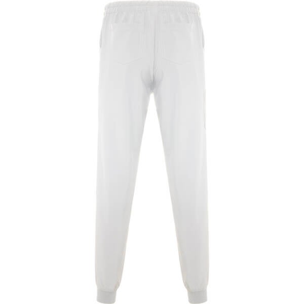 Rechte werkbroek met elastische band bij de enkels. Elastische tailleband en verstelbaar trekkoord. Franse zakken.